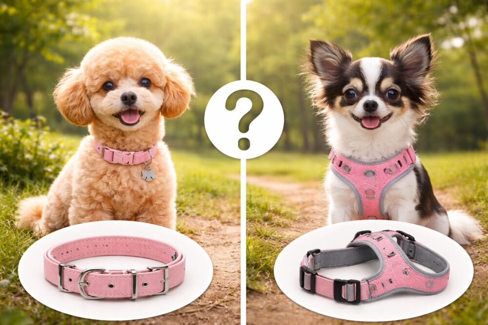 いざ探してみると、可愛い首輪やハーネスがたくさんあって「うちの小型犬にはどっちが良いんだろう?」と迷ってしまいますよね。